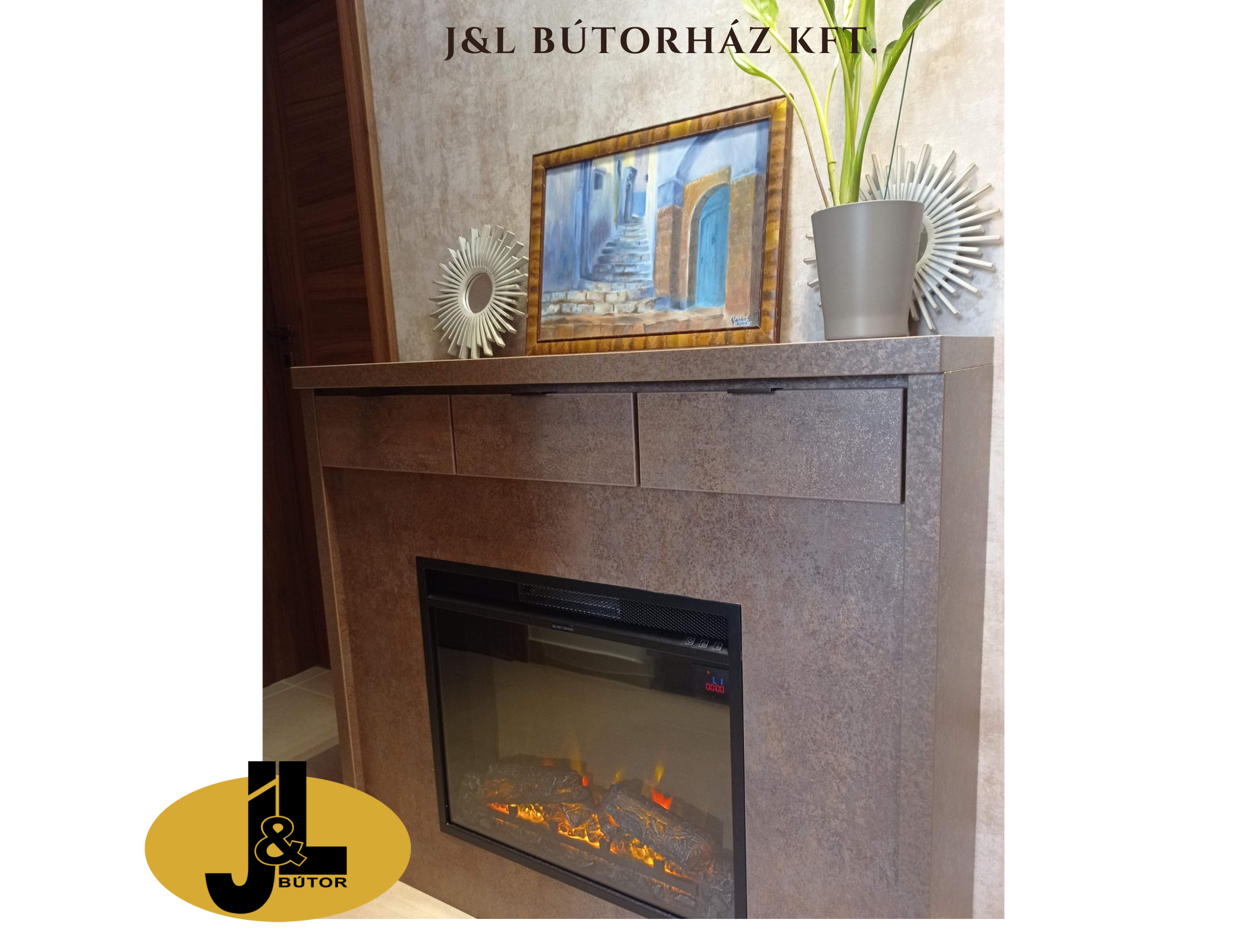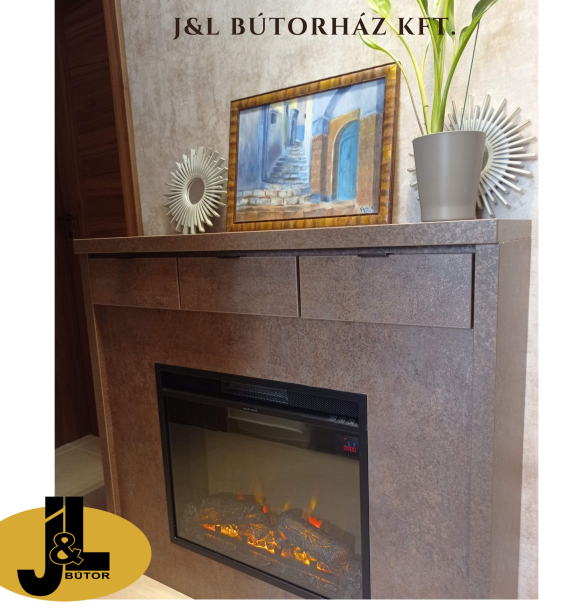 És az érdekesség, hogy az előszobába egy elektromos kandalló került beépítésre és ehhez kellett burkolatot építeni felül 3 kisfiókos megoldással, ami egyben a praktikumot is szolgálja nem csak a szépséget és esztétikát.