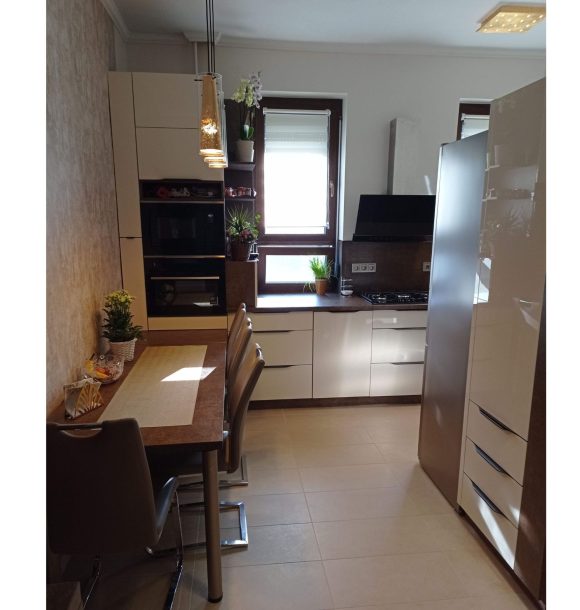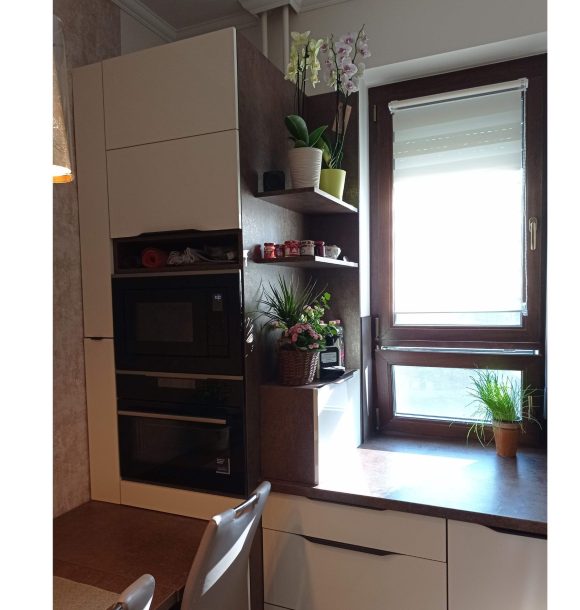 Ennél a megrendelésnél határozott elképzelések voltak, mert az előző konyhabútor adottságaiból és hiányaiból körvonalazódott miket kell megvalósítani, minek kell helyet teremteni stb.