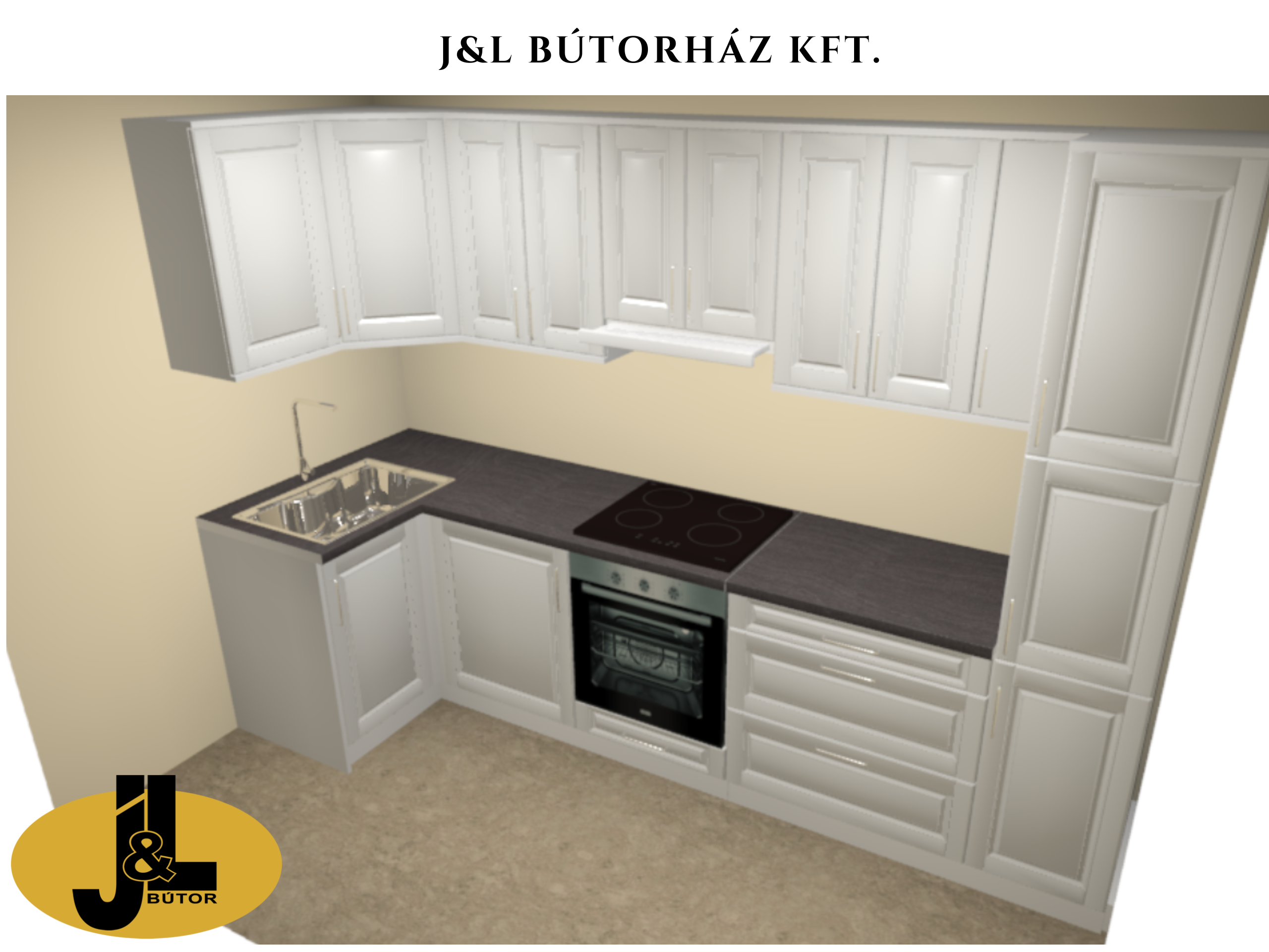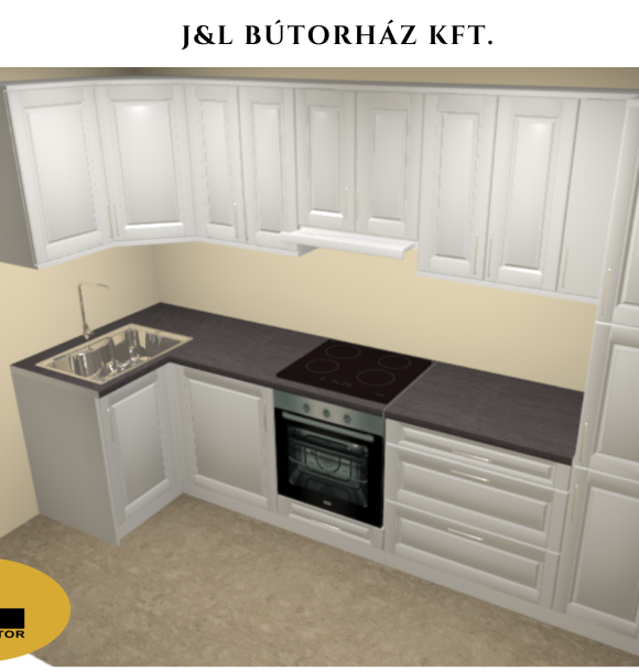 Fent megadott árunk tájékoztató jellegű, hogy segítséget adjunk egy hozzávetőleges bekategorizáláshoz. Fent látható az elkészülés éve, az ár tartalmazza a munkalapot, fogantyút, sarokba a mosogatót és alap kiegészítőket. Nem tartalmazza a  szállítás-beszerelési költség összegét és a beépíthető készülékeket.