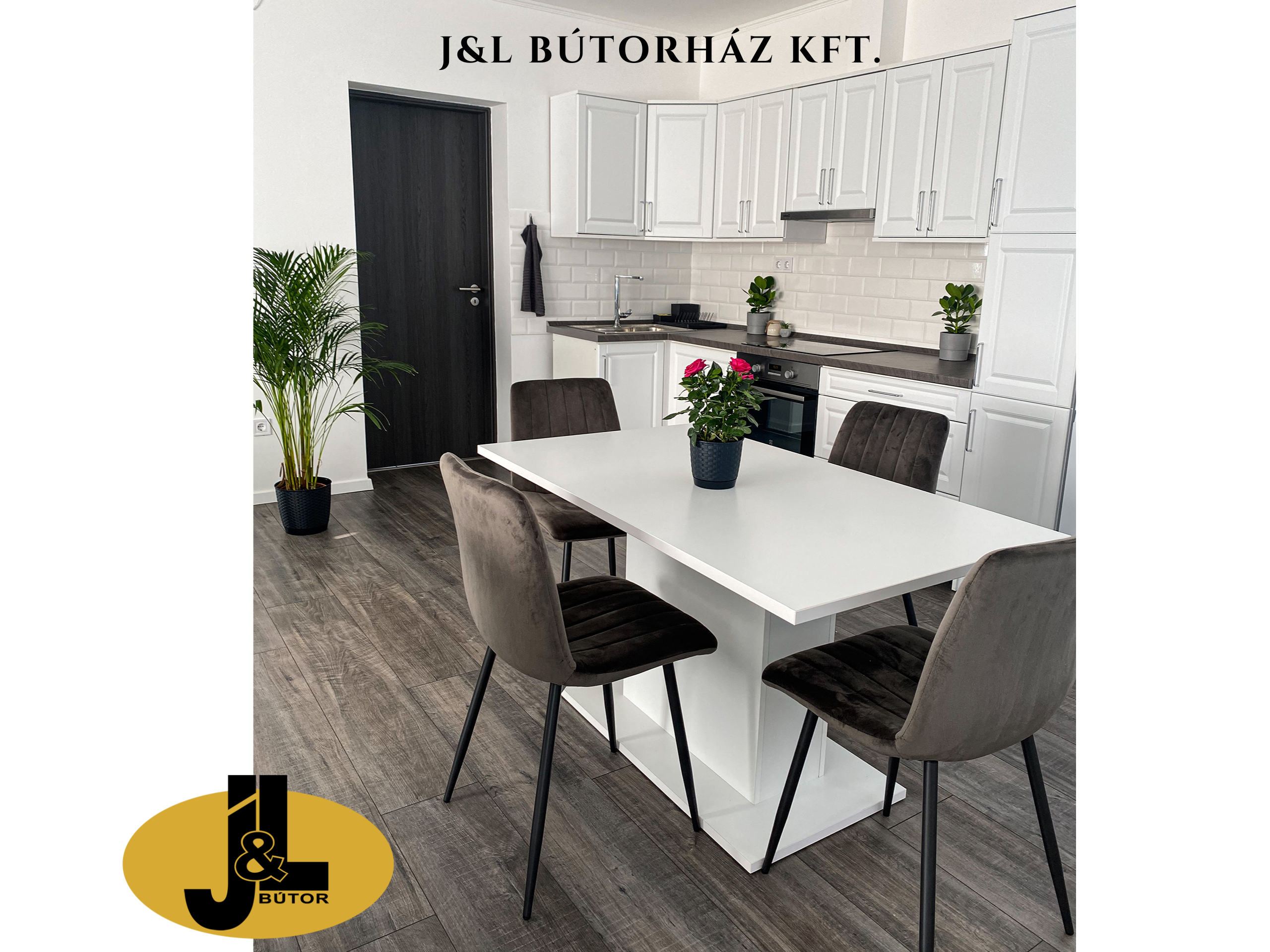 Egy új építésű lakásba terveztük meg a laura konyhacsaládból ezt a bútort. A konyha egy légtérben volt az étkező-nappalival, így fontos volt, hogy harmóniába kerüljön a többi bútorral, így esett a választás a fehér színre, ami nagyon jól párosítható bármilyen más színnel.