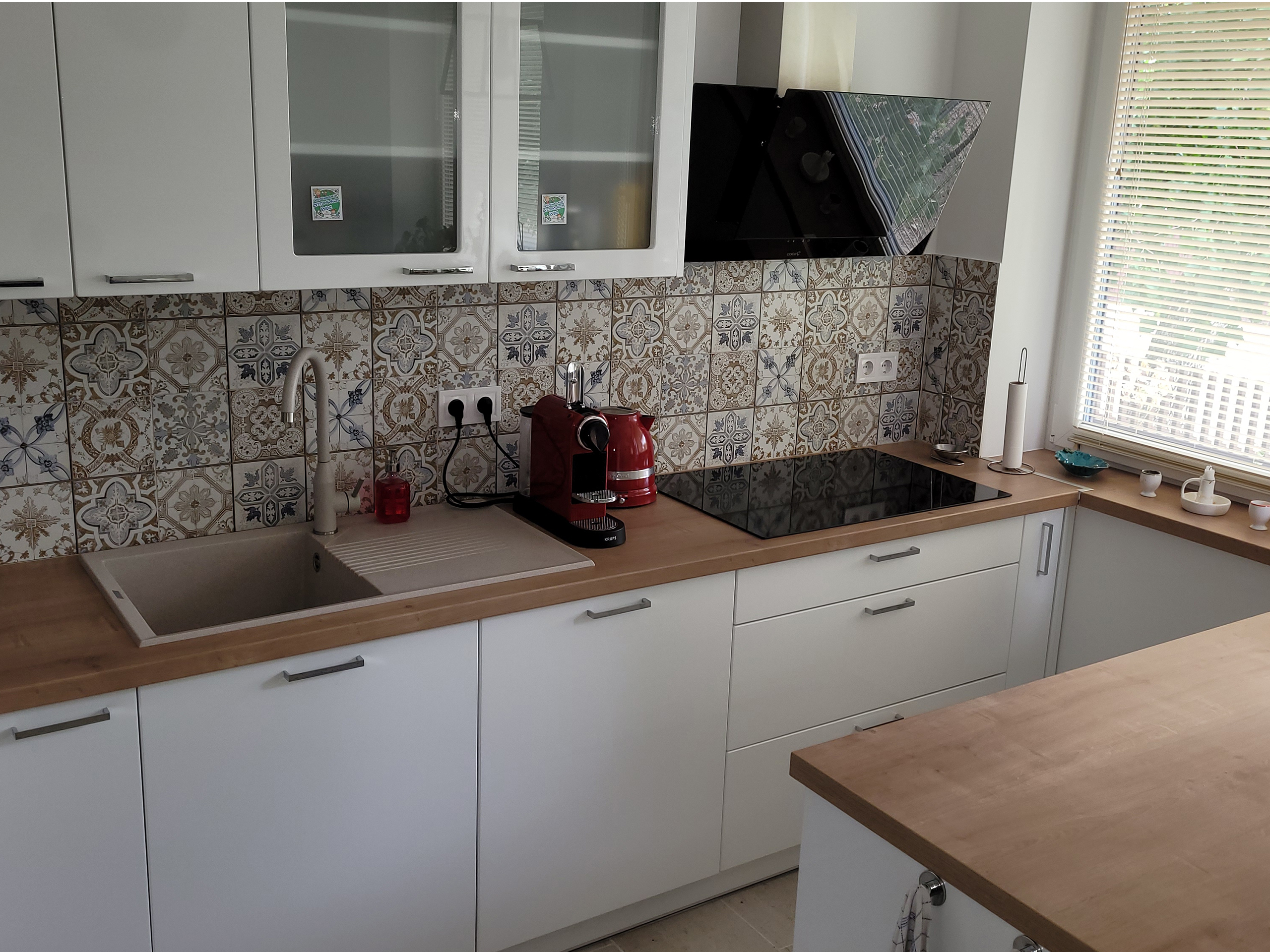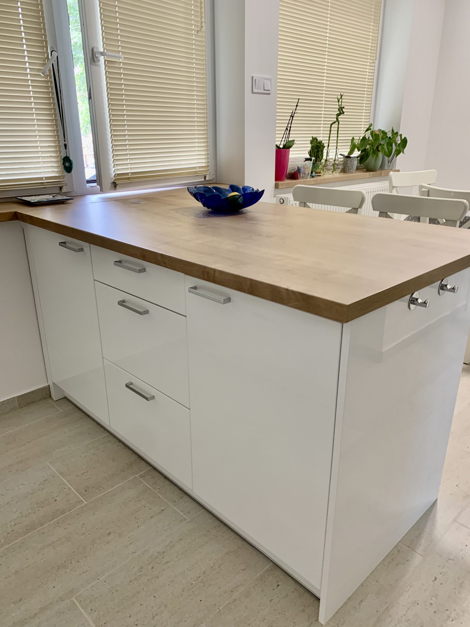 Szeretett volna mindenképp egy szigetet, hogy egy gyors reggelizéshez ne kelljen az étkezőrészt használni, illetve ki tudja használni a plusz munkapult lehetőséget is.