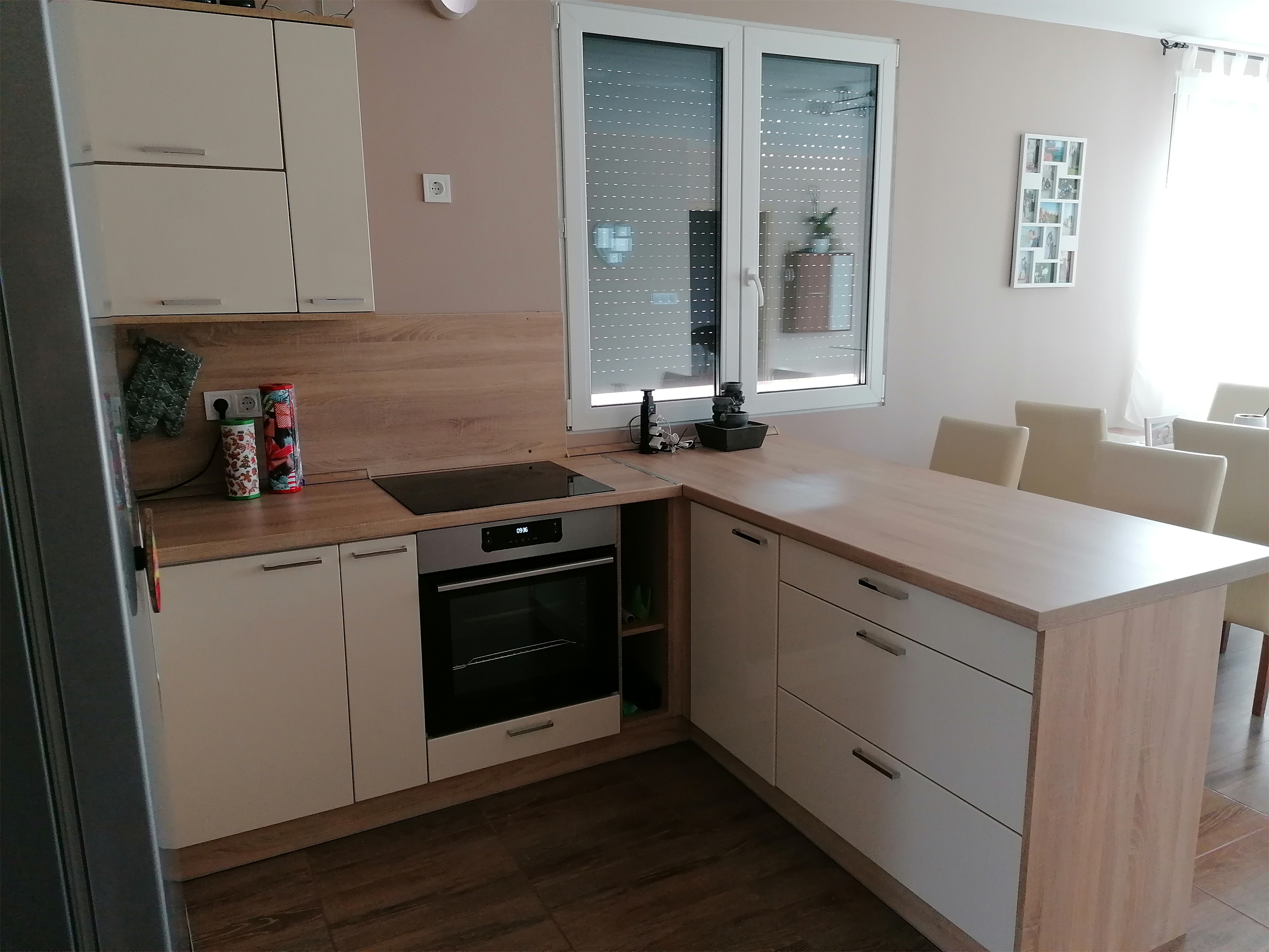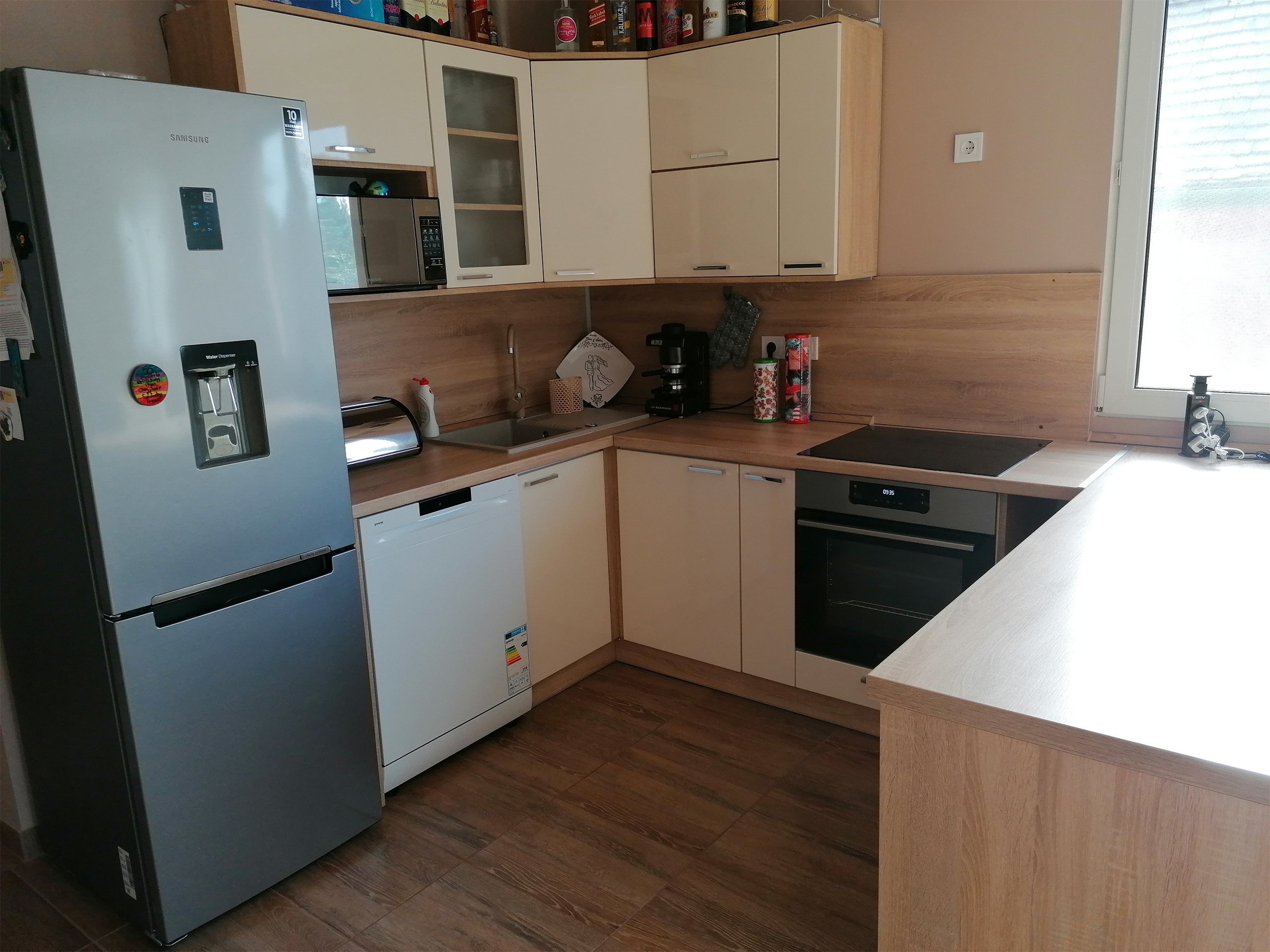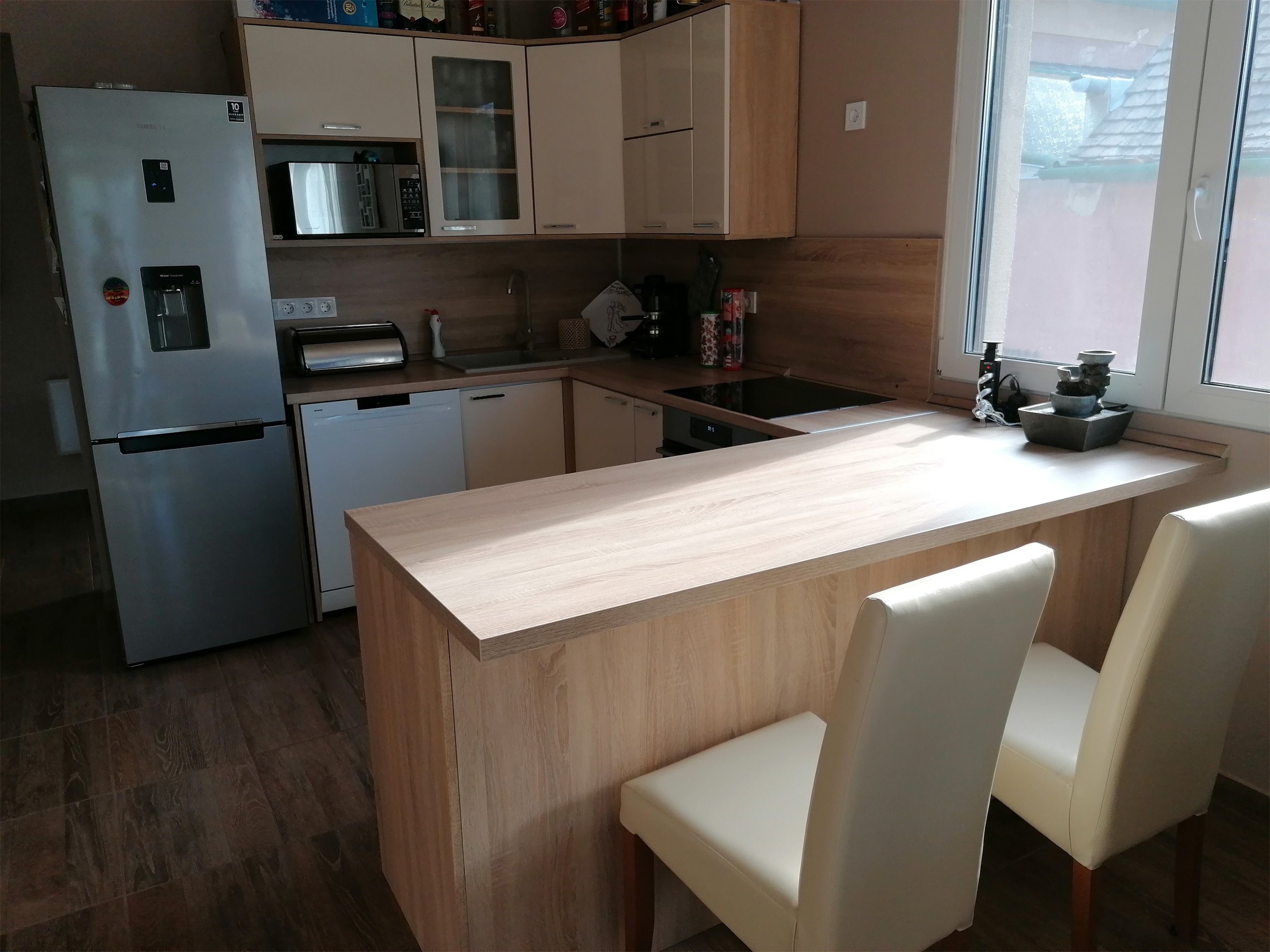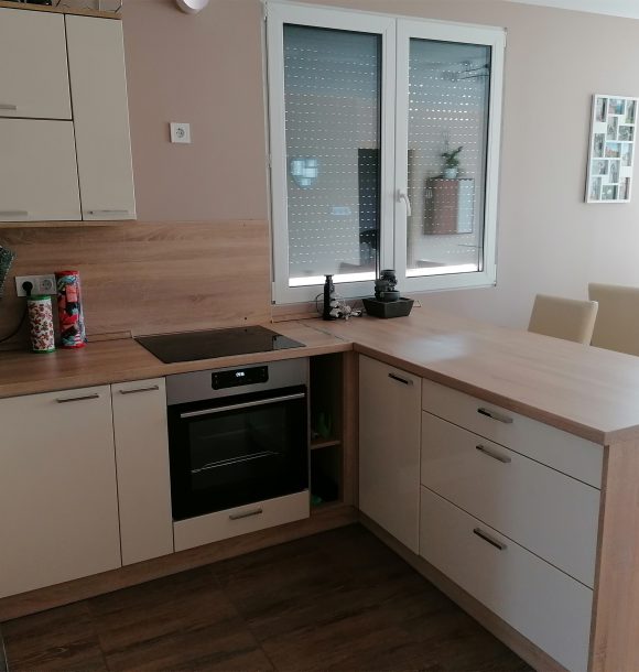 Egyedi gyártásnál az árban benne van a konyhabútor beszerelése, ezért már külön nem kell fizetnie. Minden asztalos munkát elvégzünk, kivéve a vizet és a beépíthető gépek bekötését, mert a garancia miatt szakszervizzel kell beköttetni, illetve nem a szakterületünk.